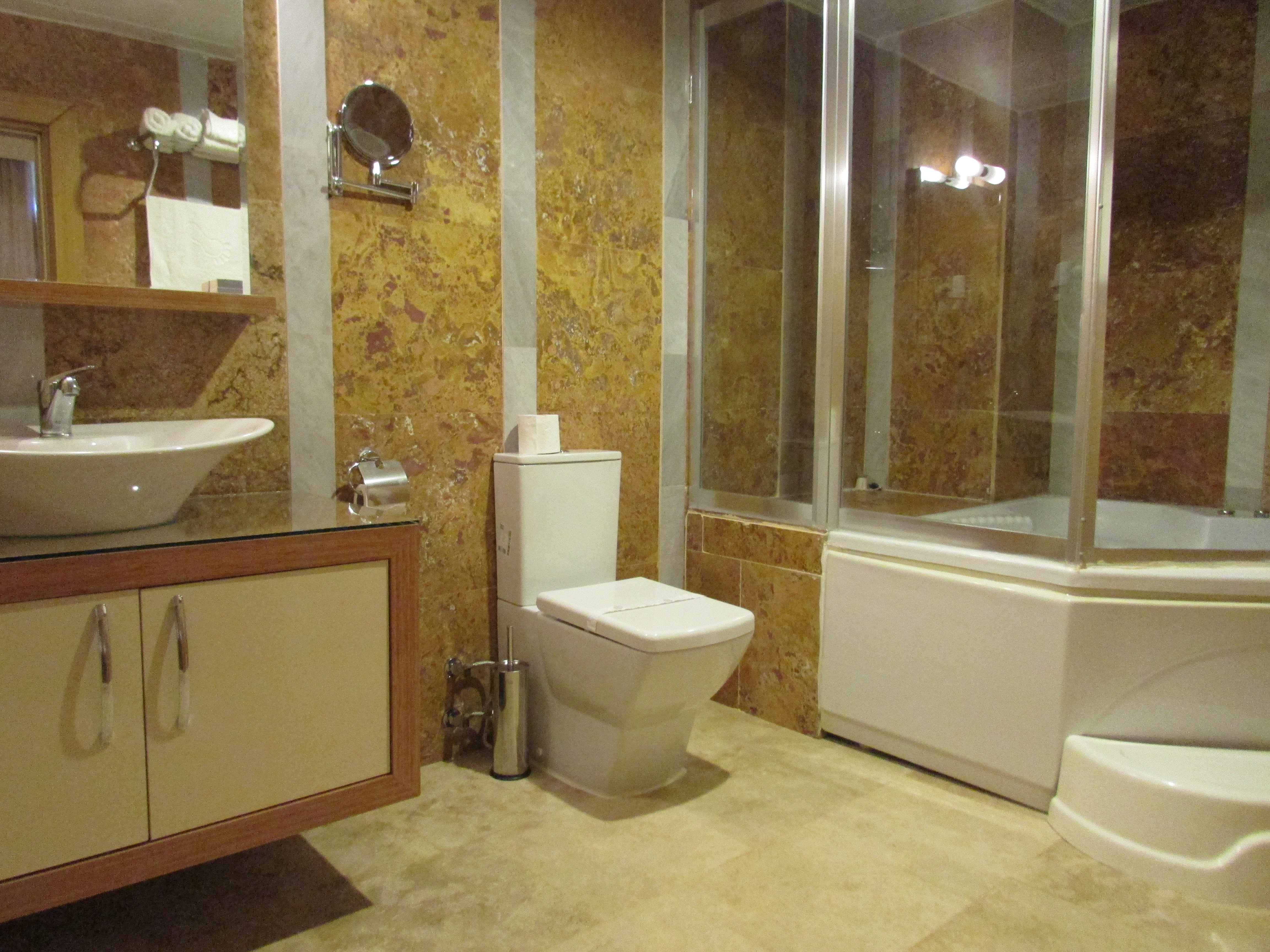 Özel banyo ve WC, konforlu bir duş deneyimi sunar.